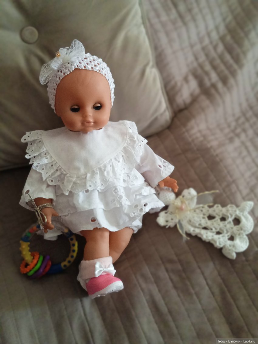 Она долго болталась с игрушками детей, пока меня совесть не замучила и я не привела её в полный порядок и поставила на полку с моими нарядными куклами.