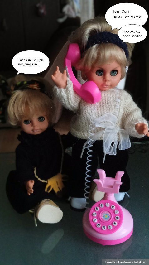Потом куклы решили, что им нужно звонить тёте Соне, Санта Клаусу и вообще, неизвестно кому.