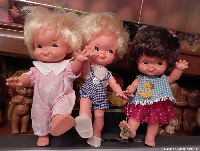 Уж очень мне понравились их задорные, хитрые личики. Опять же знаменитое немецкое качество на высоте. Куколкам под 70 лет, а они как новые при правильном хранении. Винил не темнеет, волосы блестят, не вылезают.