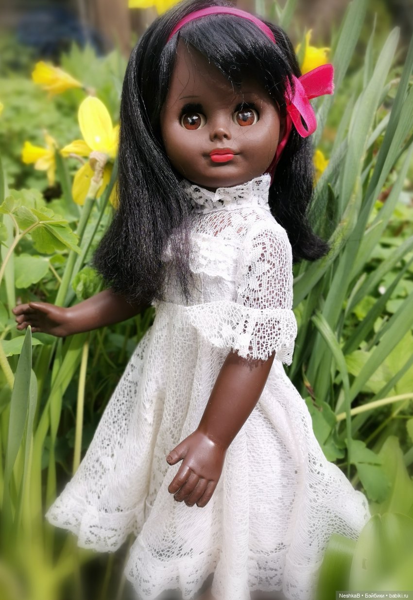 … Историй, подобных этой, можно встретить немало. И все же я хочу поделиться ею… Потому что радостью стоит делиться с друзьями и единомышленниками. Под новогодней елкой меня, девочку родом из СССР, всегда ждал подарок. Родители не баловали нас тогда сверх меры, но искренне любили и старались порадовать. А тут меня ждал и вовсе фантастический сюрприз. В большой ярко-синей коробке с оранжевыми и желтыми цветами была КУКЛА. Она была не большая и не маленькая, темнокожая, с удивительно красивым личиком, копной курчавых волос, в стильном оранжевом брючном комбинезоне с брюками-клеш от колена… А в качестве приданого в коробке были платье, заколка-ромашка и зеркальце… Ничего подобного я не видела… И восторгу моему не было предела. Помню, что родители пошли в гости и взяли меня с собой, а я взяла туда свою чудесную куклу. Там родственники и решили единодушно, что звать ее будут Анжелой, в честь популярной в те годы Анжелы Дэвис…