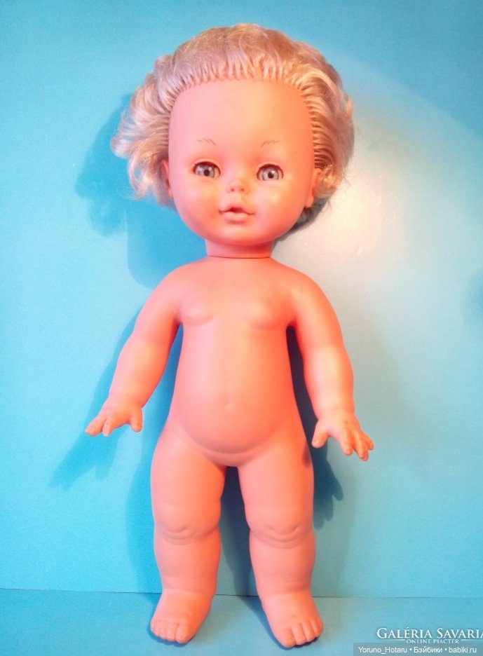 Как ни странно, шарнир у куклы один: поворотная только голова все остальное литое. А самое любопытное — материал, из которого выполнена кукла.