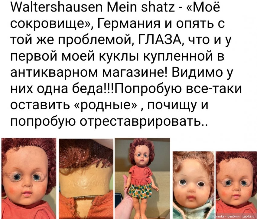 Всем солнышка в душе и исполнения желаний🌞🌱🍀Я злюсь на себя.Сколько можно их покупать???!!! Одну мою куклоподругу они вообще ужасно раздражают, и она давно уже даже ради приличия этого не скрывает.«Ну зачем тебе это барахло?! Да ещё в таком количестве??! Они ничего не стоят! На те деньги, которые ты потратила на этот хлам, ты могла бы купить хорошую антикварную куклу ».Да, она права.Но для моего внутреннего ребёнка они всё ещё нужны, и для меня лично они Очень даже стОят.Потому что они из моего«прекрасного далёка»… а в нём у меня не было дорогих антикварных кукол, а были Светка и Лариска.