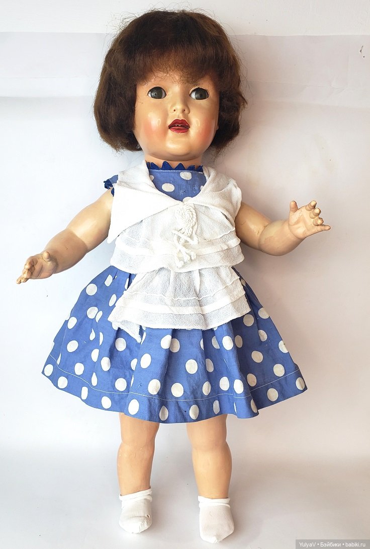 А если по годам выпуска, то братец старше лет эдак на 20 минимум)))он из супер тонкого целлулоида, а деваха кстати очень тактильная, мягонькая вся и достаточно лёгкая, лишь голова утяжеляет тело из-за густой прошивки толстыми волосами))
