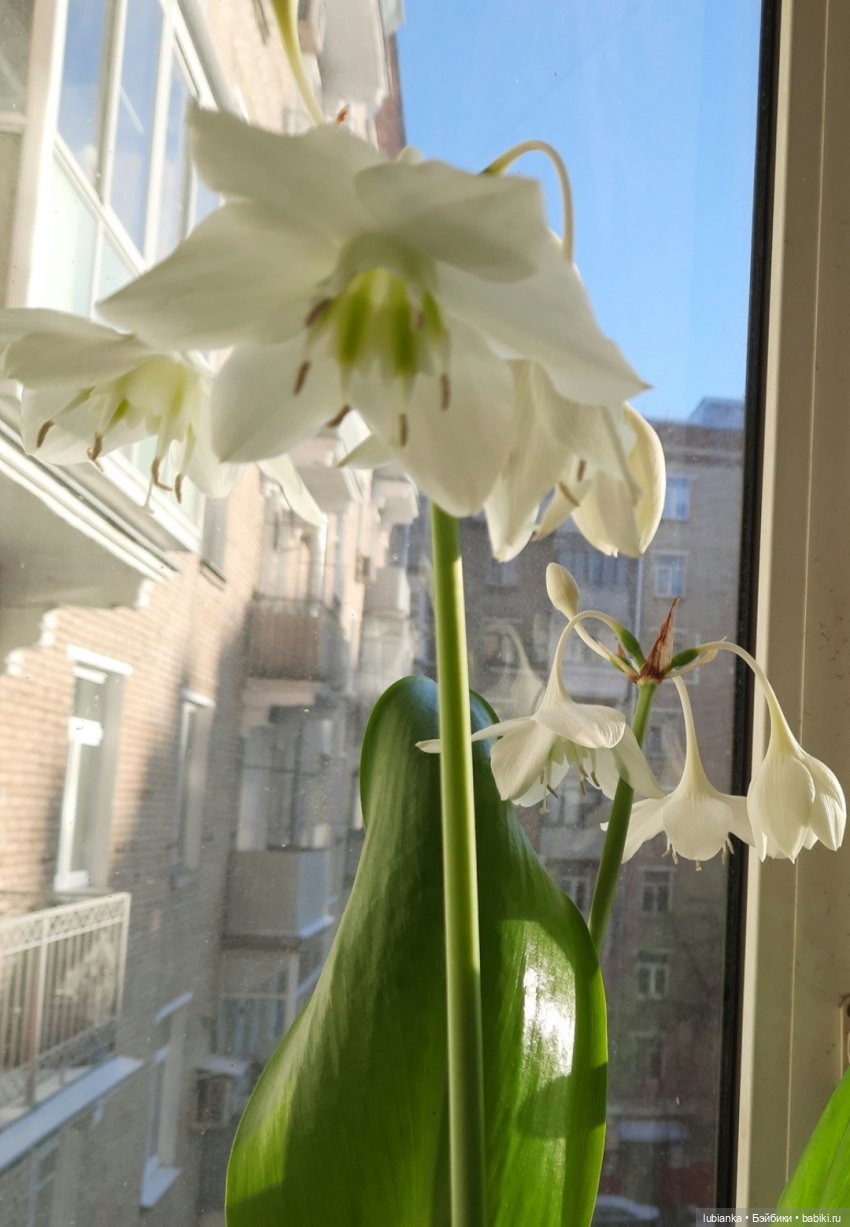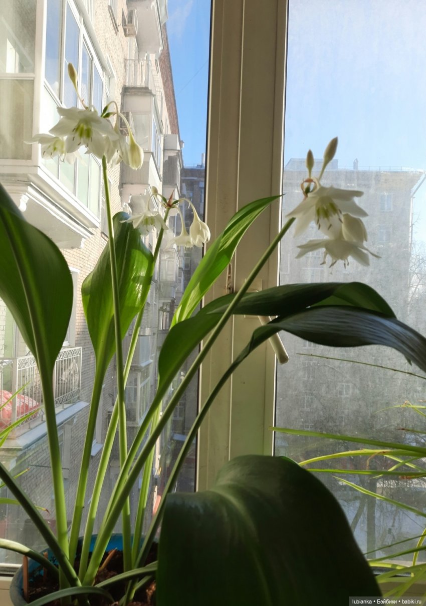Всем большой весенний привет!А у нас эухарис расцвел! Это общепризнанное название комнатной амазонской белой лилии. Которую вы наверняка хорошо знаете по белоснежным цветам и крупным листьям миндалевидной формы, а возможно и разводите.