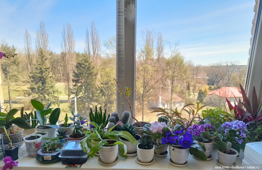 А сейчас у меня на подоконнике разнообразие. И кактусы, и фиалки, и всякая зеленуха. Что понравится — селю.