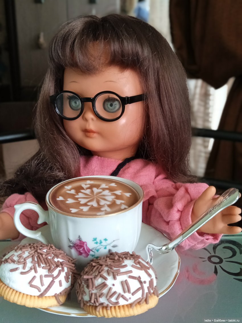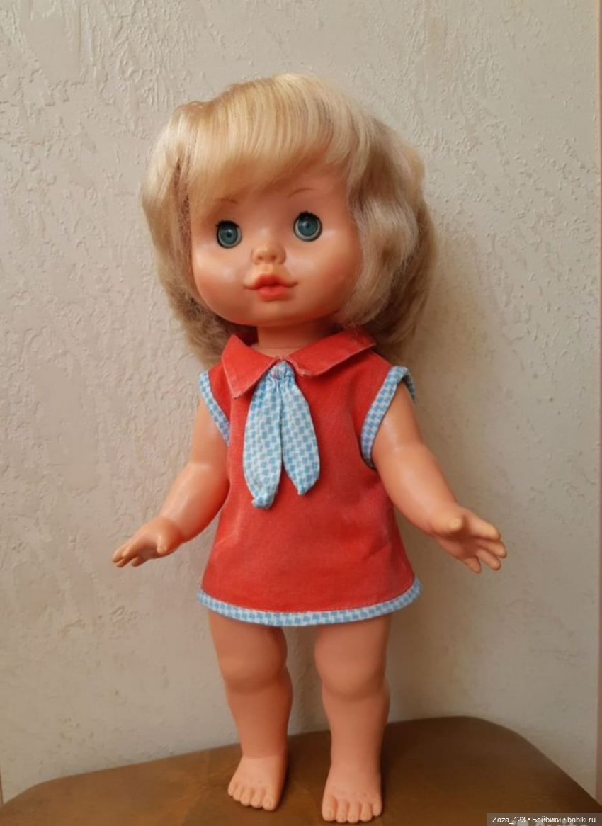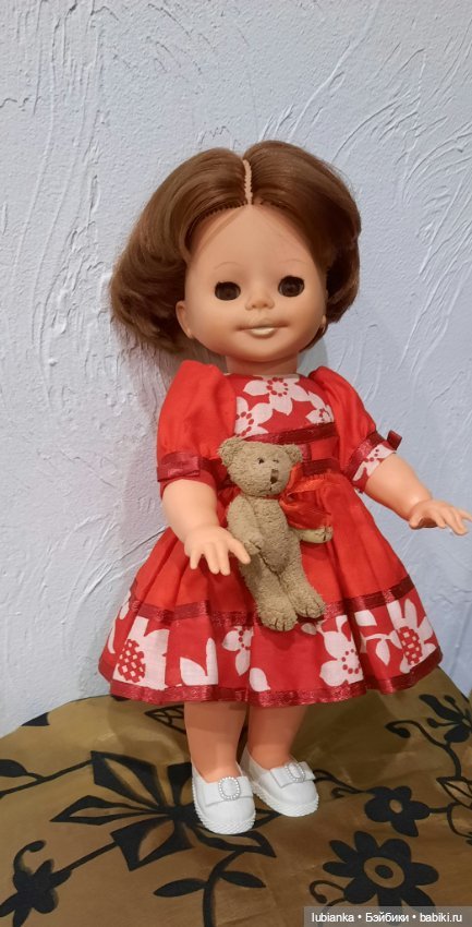 Мягонькая, в родной одежде, правда по жизни потерян туфель, зато ни разу не нарушалась причёска!!! Вы можете себе такое вообразить?!?!!! Волосы мне показались немного тоньше, чем обычно бывают у ГДРок, но густота меня, видавшую всякое, сразила наповал! А ещё родной прямой пробор-я не могла его не оставить, коль его от роду так прошили)))