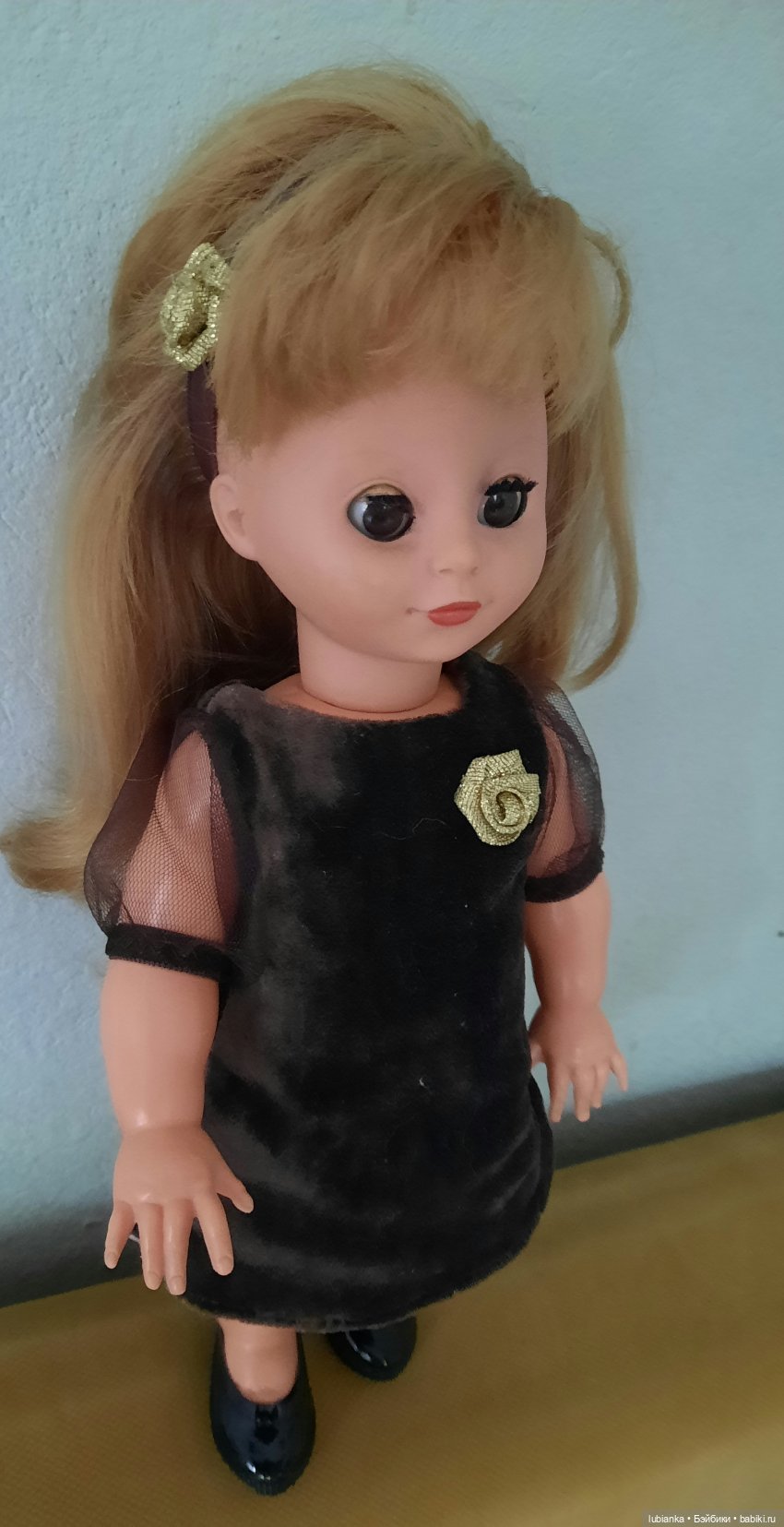 Так вот, там в комментариях пользователь laskaPa упоминает, что ей эту же куколку и её брюнетистую сестричку распознали как Бигги. И, пройдя через профиль автора комментария, я нашла третий топик. Там на кукле родные платье и туфельки с клеймом куколки. Это Бигги, есть подтверждение.