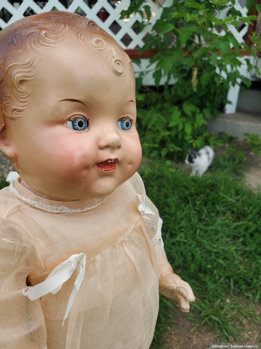 Очень интересная девочка. Хорошая сохранность, несмотря на возраст. По информации, кукла выпускалась в 40х годах прошлого века.