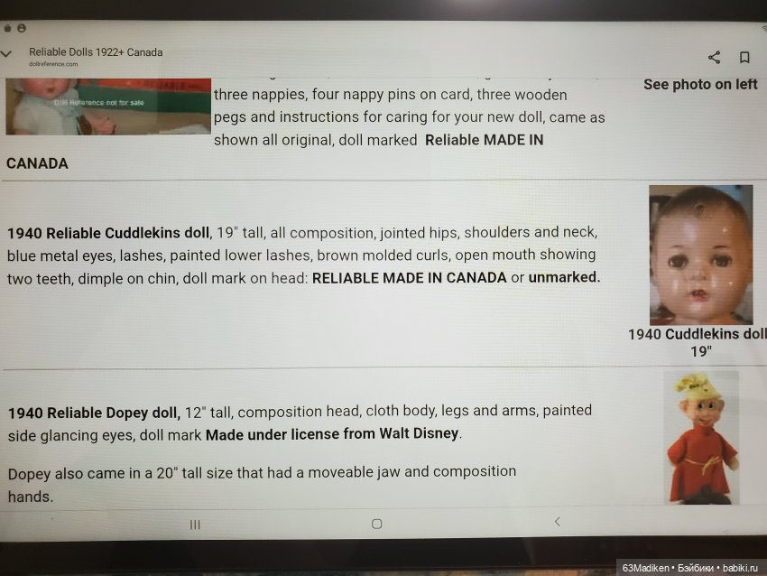 На dollreference очень мало информации по канадским куклам, неполный каталог и очень неинформативные фото.