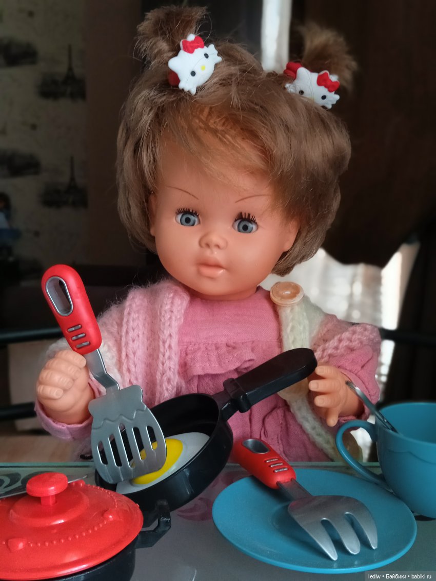 Когда у меня совсем уже не останется места (и денег)для новеньких, займусь перевоплощением внучачьей Зинули(фргэшки ЭЛЫ), которая притулилась на даче на верхней куклячьей полке, хоть и не унывает, но всё ж явно чего-то ждёт...)