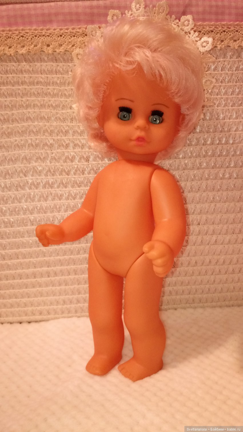 Видимо кто-то учился на ней парикмахерскому искусству и макияжу. Я отмыла куколку и теперь она выглядит вот так: