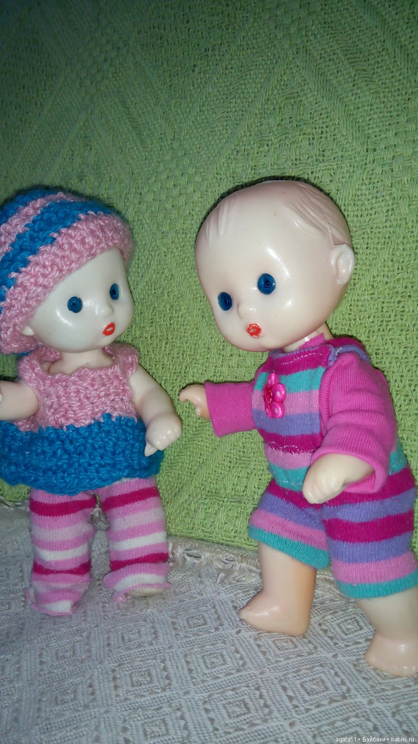 Добрый вечер! Появились у меня две барышни: тоненькая и в теле.У высокой и худой нет ресниц и брови в фломастере.Чем бы ещё потереть? Рост куклы ГДР 32 см, голова и руки из резины.Толстенькая и низенькая вся из резины, рост 28 см, лицо в порядке. У толстушки на шее есть цифры: 30 12 10 буква в, кажется, или б? Я ничего не смыслю в немочках.Пожалуйста, подскажите, кто они? Как их звать? Забрала их с рынка в ужасном состоянии, стало жалко девочек.