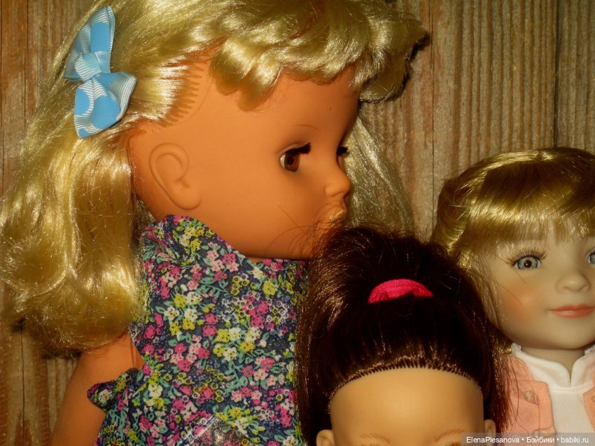 До приезда новенькой, я немного сомневалась, окажутся ли девочки из одного «ларца»? Цвет глаз, причёска, цвет волос делают кукол разными. Спецу по куклам ГДР, схожесть, наверное, была бы очевидна сразу, ещё по фото, но я не спец, я любитель) Но вообще-то я была и не так уж и не уверена, просто не сразу разглядела)