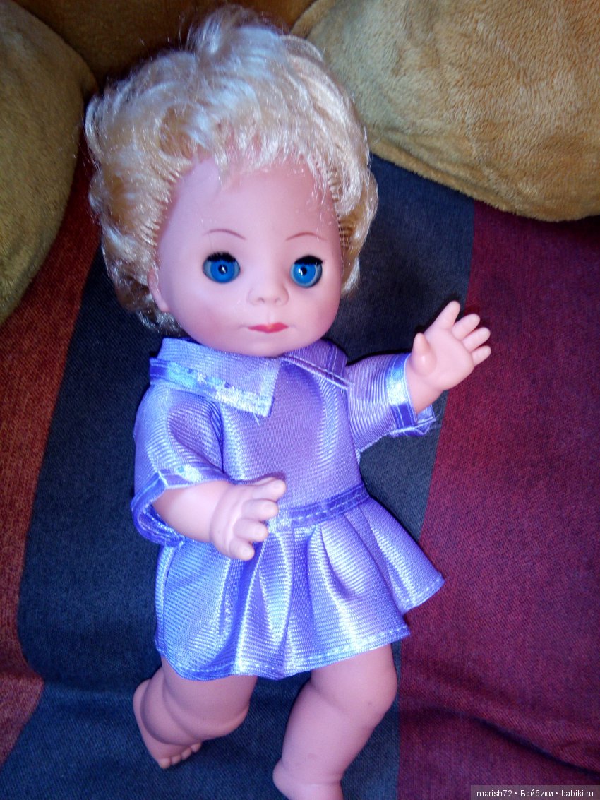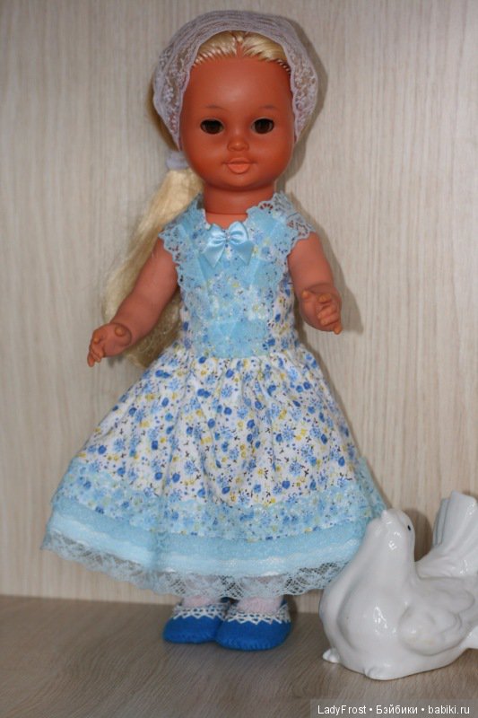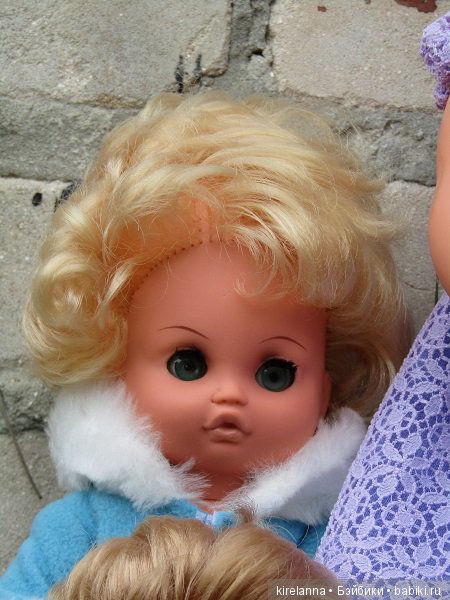 Очень похожая, только кареглазая и в свадебном платье, жила у моей бабушки, но увы, после бабушкиных похорон тётя вынесла куклу на помойку…