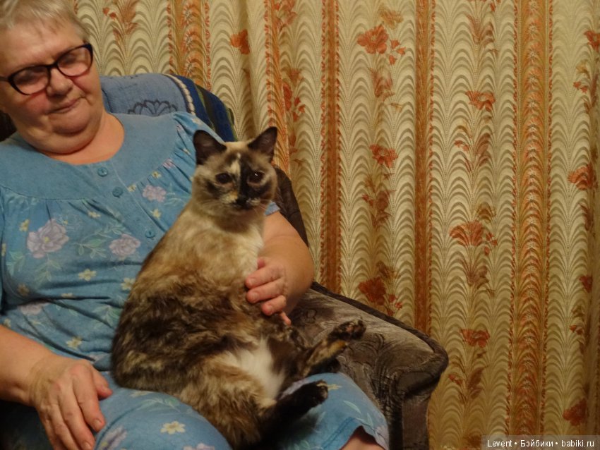 Наша дама с характером, никогда на колени не ляжет. А если поймаешь её, то терпит буквально минуту, а потом спрыгивает с рук и уходит.