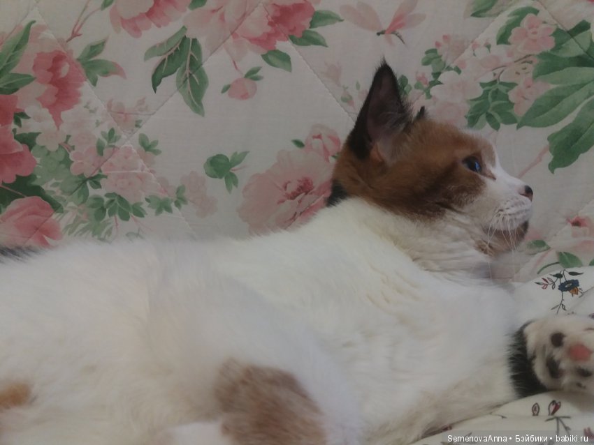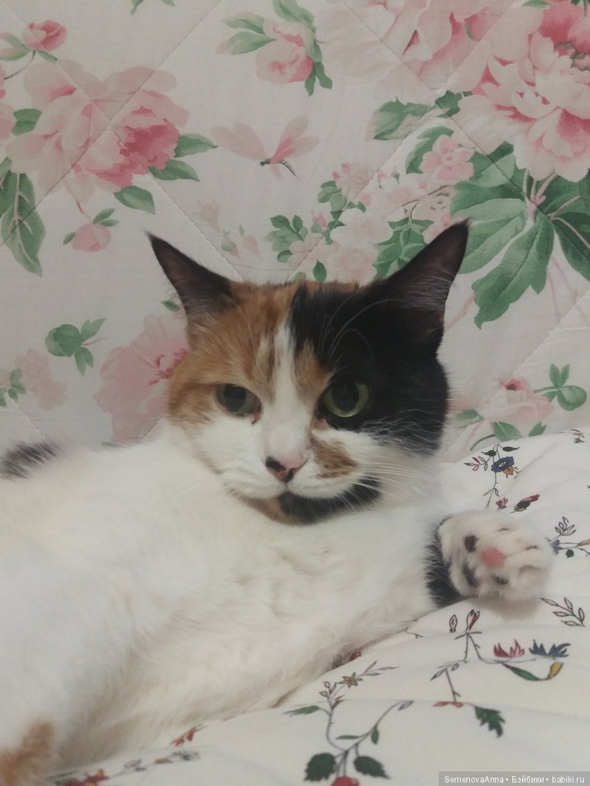 Да, Дуся хорошо устроилась на диване, да и вон как раз в тему — весенний, с цветочками)