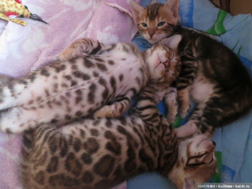 Первые 3 фотографии котятам всего 28 дней, а сегодня котяткам уже 1 мес и 8 дней.Когда котята спали, решила сфотографировать их спящими.Полюбуйтесь, они как дети, такие милые! Окрас будет еще ярче, так как природа позаботилась, чтоб котята были незаметными.Последняя фото котятам меньше месяца-окрас не яркий.С каждым днем до 6 мес шкурка приобретает яркость и блеск.
