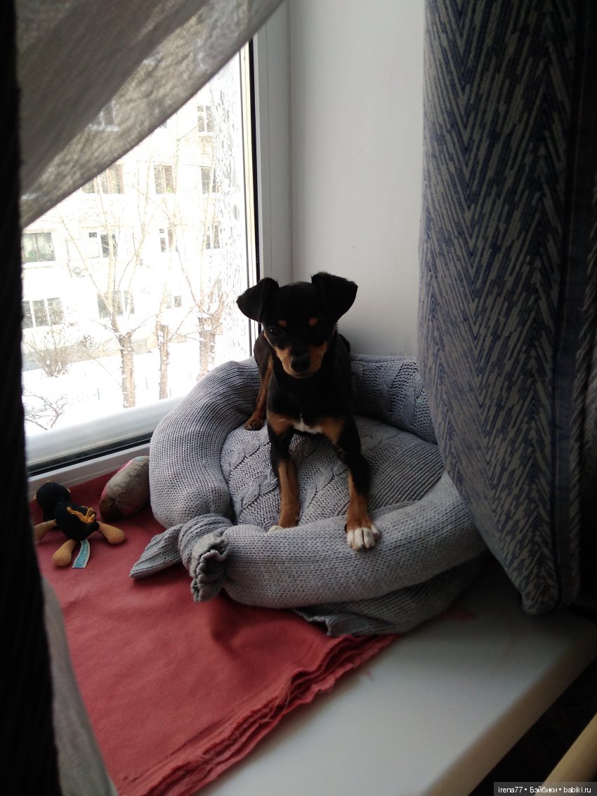Да у кнопки то ещё и своя отдельная квартира с мягкой мебелью на окне!)) сами такой лежак шикарный соорудили?) игрушка смотрю — копия собачки))
