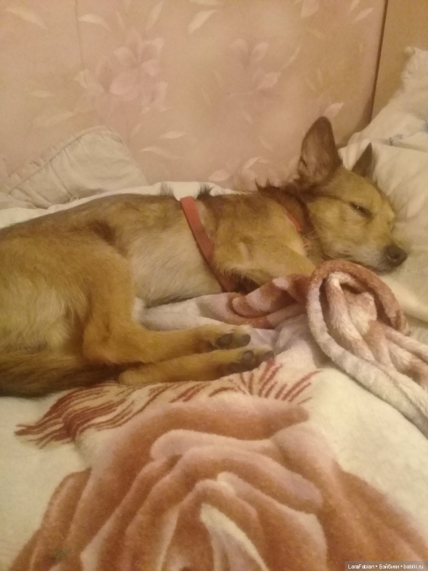 Такая она лапочка! Сразу сделали в ВК пост о том, что найдена собачка. А пока она у нас, мы её вымыли, покормили и дали имя Белочка) Она такая напуганная была! Её всю трясло, она жалась к ногам моего мужа, но это пока! Пока на кухню не вышел кот! Как она на него залаяла!!! Буквально залилась звонким лаем, но все это из за ног хозяина — так надёжнее видимо)