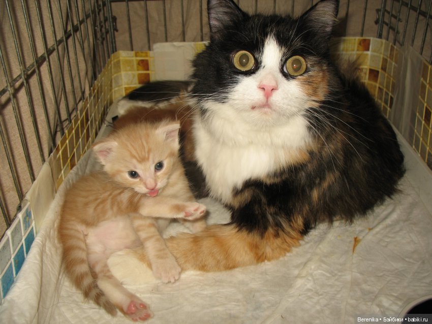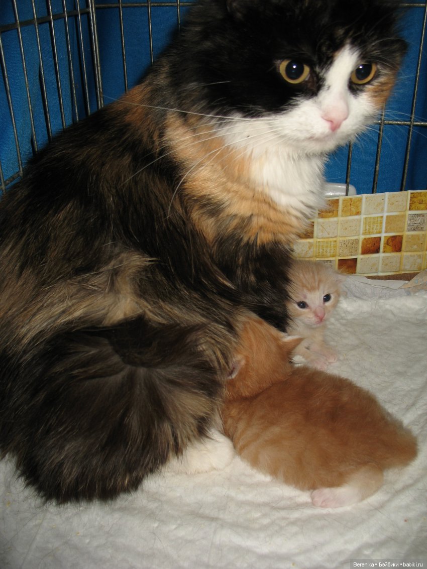 А однажды у нас ночью враз родили обе кошки! И мама, и дочь! И эта малышня в 12 ртов как запищали ночью!!! В течении месяца мы всех пристроили! Красоты невероятной удались! Кошка одна трехшерстная, преимущественно рыжих оттенков, вторая коричневая в рыжую полоску. А котят родили пять белых с рыжими ушами, у кого кончик хвоста рыжий, у кого носочки на лапах рыжие) трое было огненно рыжих! И вот каждый котёнок такой красивый!!! ВОт бы дом резиновый и дополнительную зарплату на корм — всех бы себе оставили))