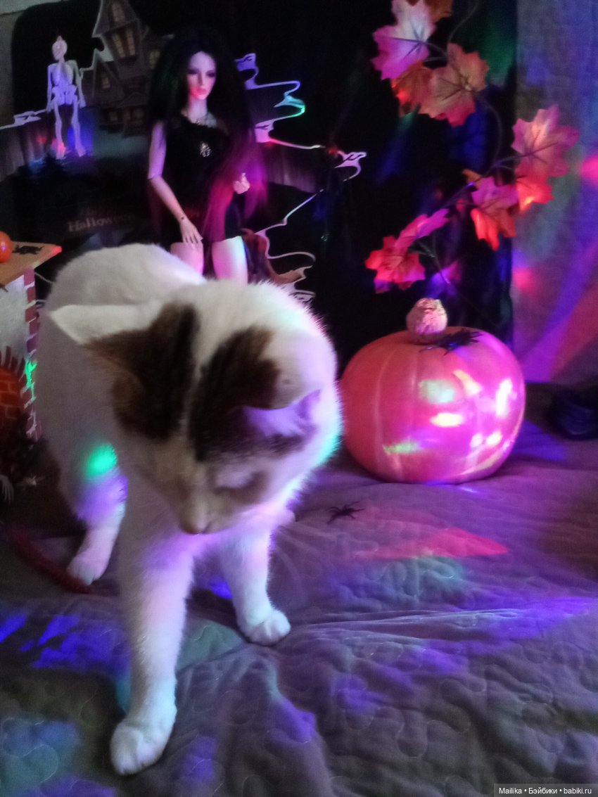 Каждый год я устраиваю тематическую фотосессию для любимых кукол. Этот раз не стал исключением. Но у кукол всегда появляются конкуренты! Котиков не надо уговаривать присесть в декорации. Они сами знают, что здесь интересно и уютно. Вот, что из их хеллоуино-фоток получилось.