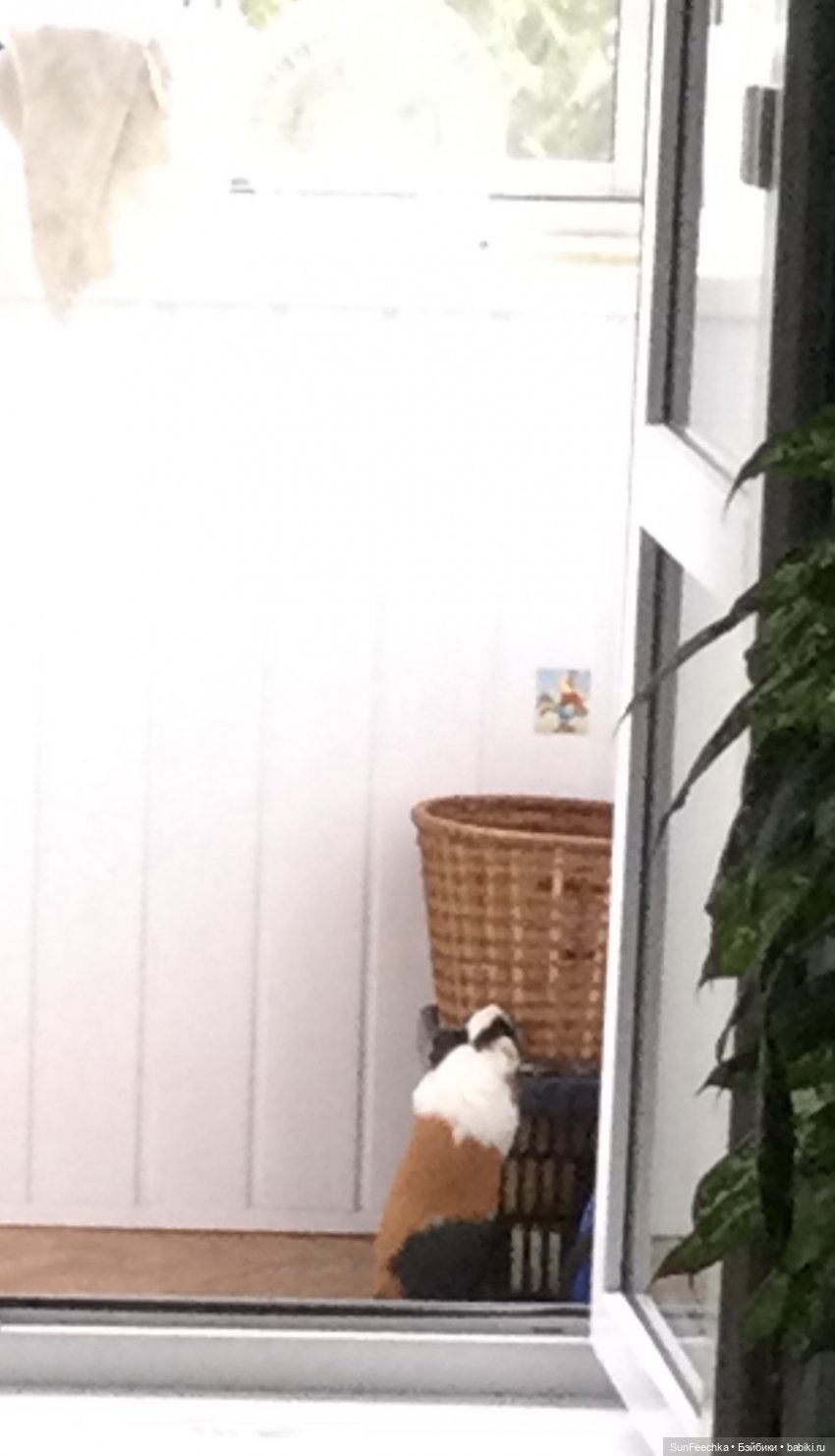а это наш Чижик :) хочет стырить кукурузу из корзины)) она у нас гуляет по квартире свободно, когда мы дома.
