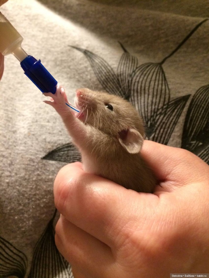 А еще как — то пришлось выкармливать маленьких и слепых крысяток — их привезли на корм удаву, но удав в тот день остался голодным, а мы стали няньками для трёх малышей )