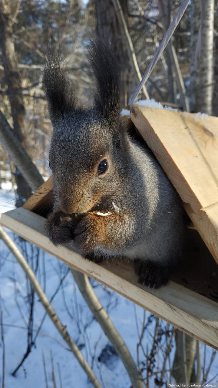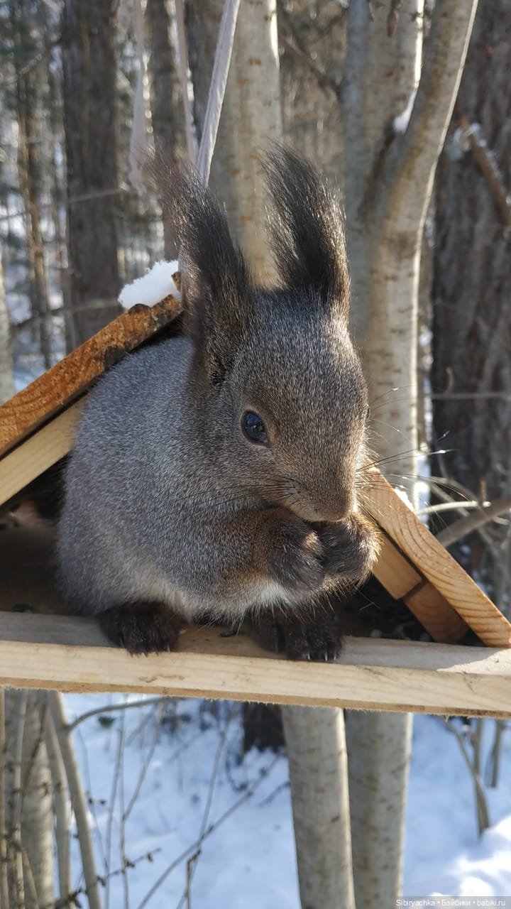 В Сибири мы уже месяц наслаждаемся зимними прогулками в лесу, во время которых постоянно наблюдаем за белками и делаем фотографии на память.