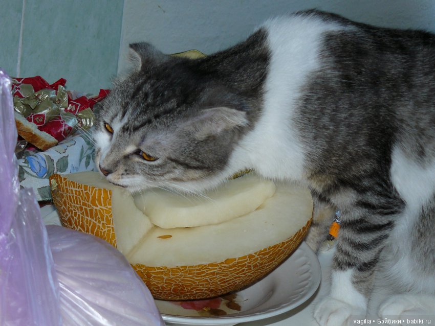 Семка появился в доме, когда ещё жива была моя старая кошка Полька. Полька была умнейшая кошка и учила всех новичков вести себя в доме. Вот и на следующих фото она учит молодого Сёмку не трогать того, что принадлежит хозяевам. Я всегда могу оставить на столе любые продукты и ни кто ни чего не стащит и на стол не залезет. Правда Семён не упускает возможности полежать на чистом столе, но только на чистом!
