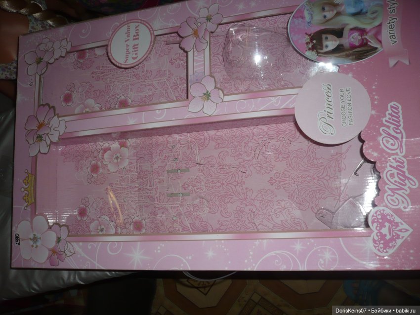 Наверху у нас оказались большие пупсы с розовыми горшками, ну вообще присматриваться не к чему. Иду вдоль ряда, который уже заканчивается и тут… тут и заканчивается моя большая вводная часть и начинается то, ради чего я вообще пришла в магазин и пишу сейчас топик. В самом углу, наполовину закрытая несущей балкой стеллажа, стояла коробка. Первое, что бросилось в глаза — ярко-розовое платье и под ним нарядные и очень качественные кеды. На коробке (будет показано на фото) — две девочки ну о-о-о-очень непохожего на весь окружающий товар вида, от которого у меня сердце дрогнуло в предвкушении чуда. Чутка сместившись в сторону, я выцепила глазами хозяйку этого и ахнула: предвкушение не обмануло! На меня из-за отклеившейся от времени прозрачной плёнки смотрела грустно и растерянно она. Кукла, которую не встретишь в наших даже самых больших кукольных магазинах (а уж по ним я пробегаюсь с регулярной периодичностью). При том освещении я не сразу рассмотрела её прелесть, но мы с мамой всё-таки встали у полок и долго на неё смотрели. И чуть было не просмотрели, ибо нас повело к другим полкам «а что там?». А там, как понимаете, ничего, мы вернулись и нам навстречу вышла продавец с традиционным вопросом о помощи. Спустя минуту она уже с высоты стремянки подавала заветную коробку. Мы посмотрели на куклу вблизи, мама посмотрела на меня, я на неё… Надо ли говорить, что на великовозрастную девицу, с радостью семилетней забирающую с кассы заветную покупку, весь магазин смотрел тем самым снисходительно-снисхождающим взглядом, которым награждают безвредных чудаков, как и положено в нормальном обществе? И вряд ли они понимали, какое сокровище я уносила с собой; да тоже китайский Китай, но… какой!