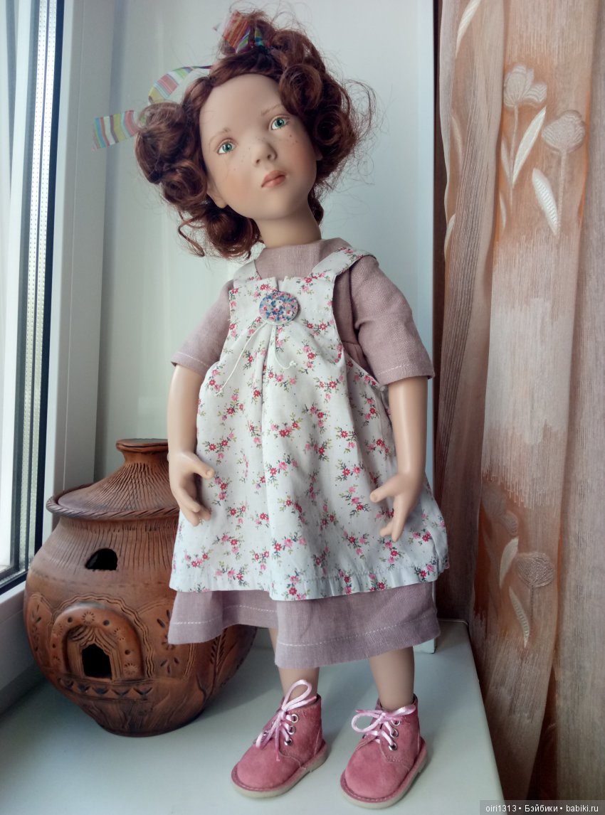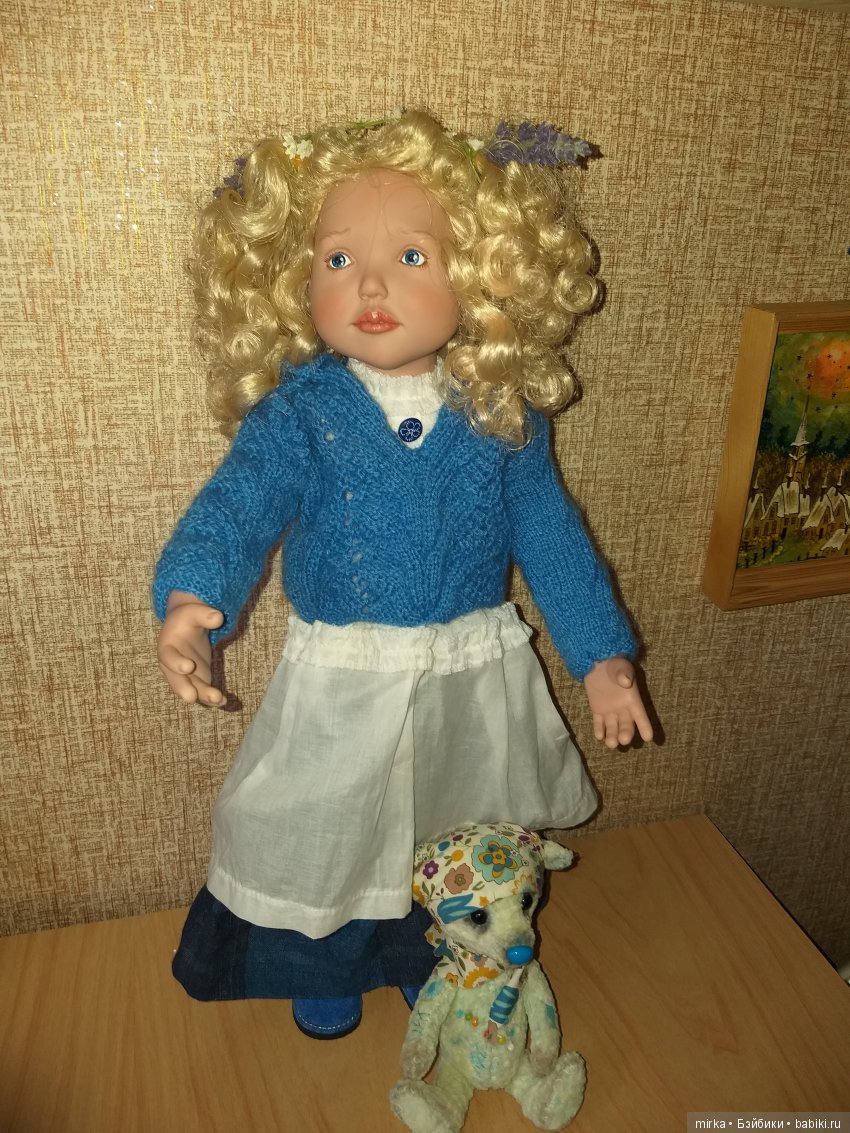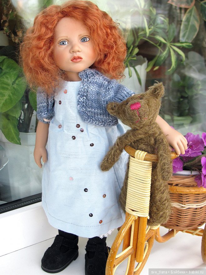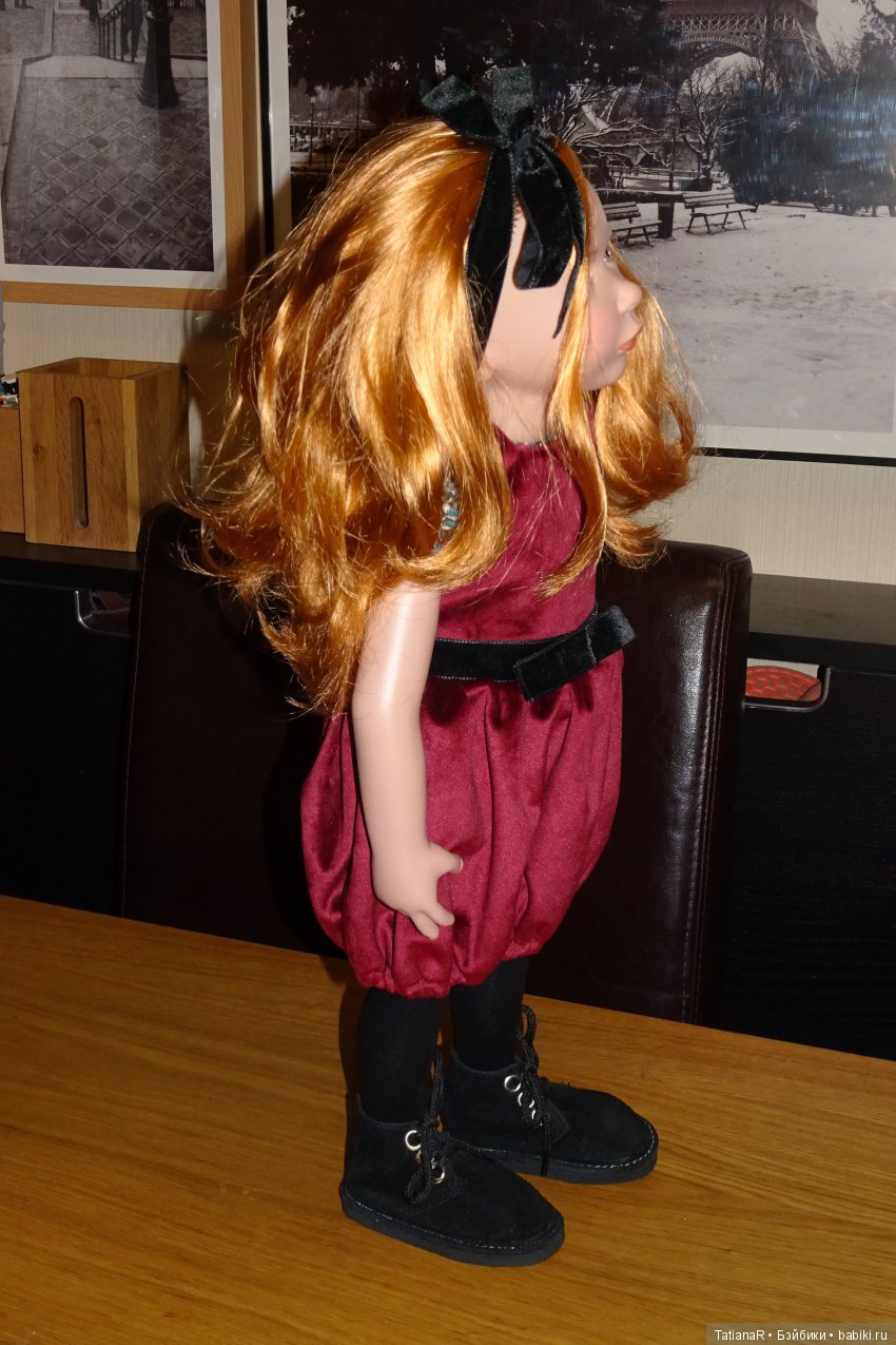 Не стала снимать её в курточке-у нас невыносимо жарко)))) Ботиночки были небольшие, поменьше стандартных, но я их сменила на обычные цверговские, имхо, они лучше подходят. Чулки тоже поменяла на синие. Редкий случай: сразу вымыла голову девице, была такая необходимость. Уф. Нелёгкий был день)