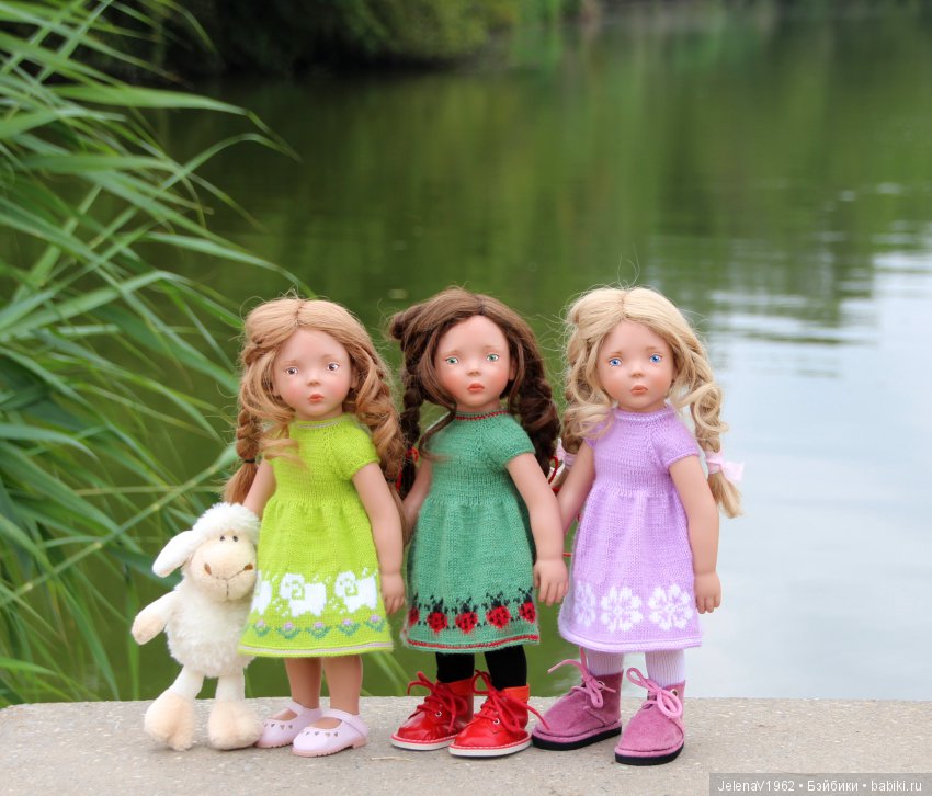 Танюша, дорогая, спасибо тебе за то, что ты такая, какая есть! Мы встретились, и будто общались всю жизнь. Вспоминаю наше общение с радостью и благодарностью. Мои Ива-Ева наконец познакомились с сестренкой Ириской — все три куколки настолько разные, что перепутать их было бы невозможно, будь они даже в одинаковых нарядах.