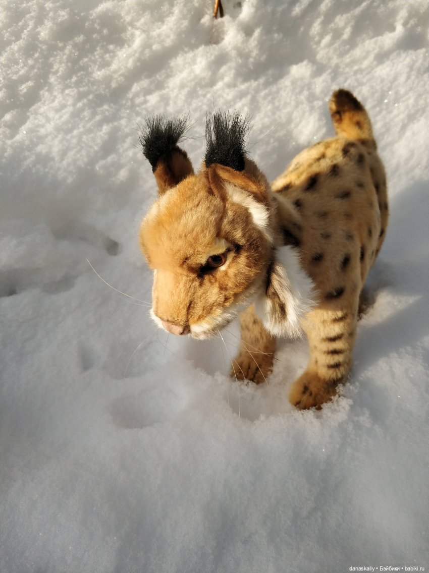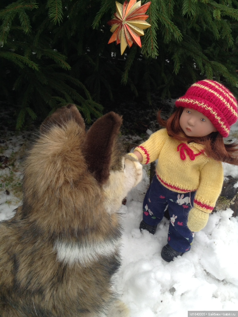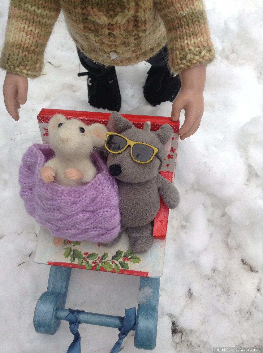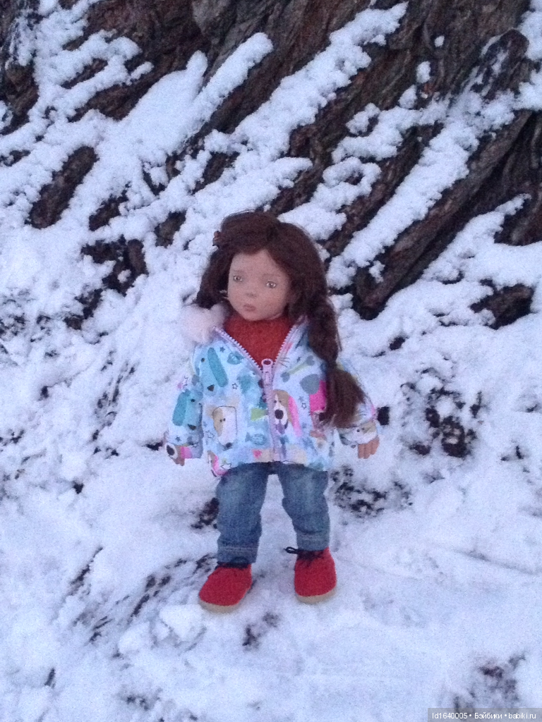 (Вообще-то это питомец Эдны с моей кукольной полки, которого она отпустила проветриться и освежить шкурку снежком.)