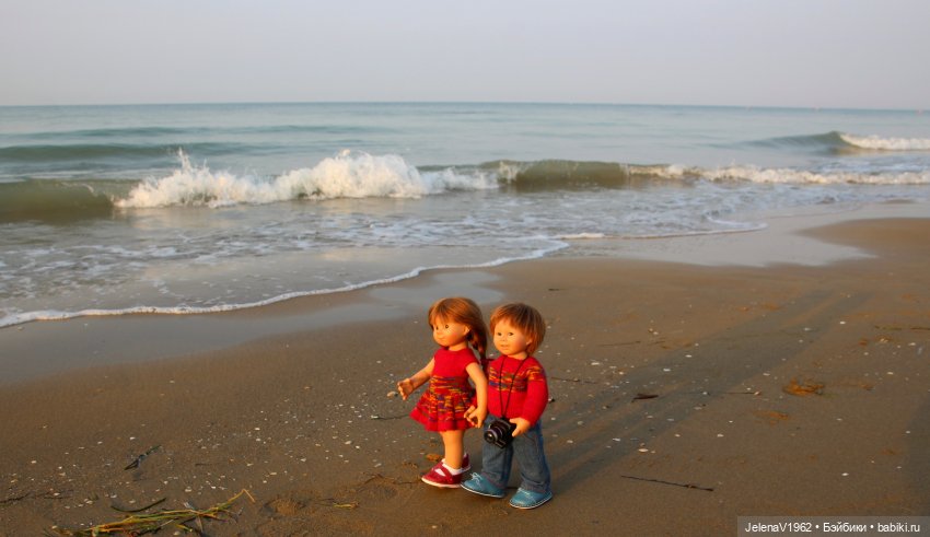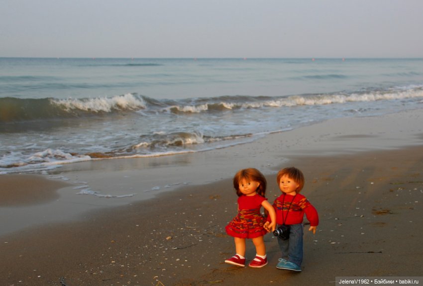 На фотографии у моря Том уже пошёл, а Катюшка осталась на месте, ну что мне стоило её ногу назад отвести… Вижу только потом на фотографии.