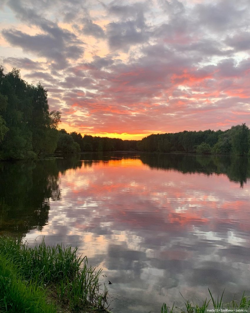 Да, вот такими красивущими закатами мы любуемся на речке, стоит только перейти дорогу.