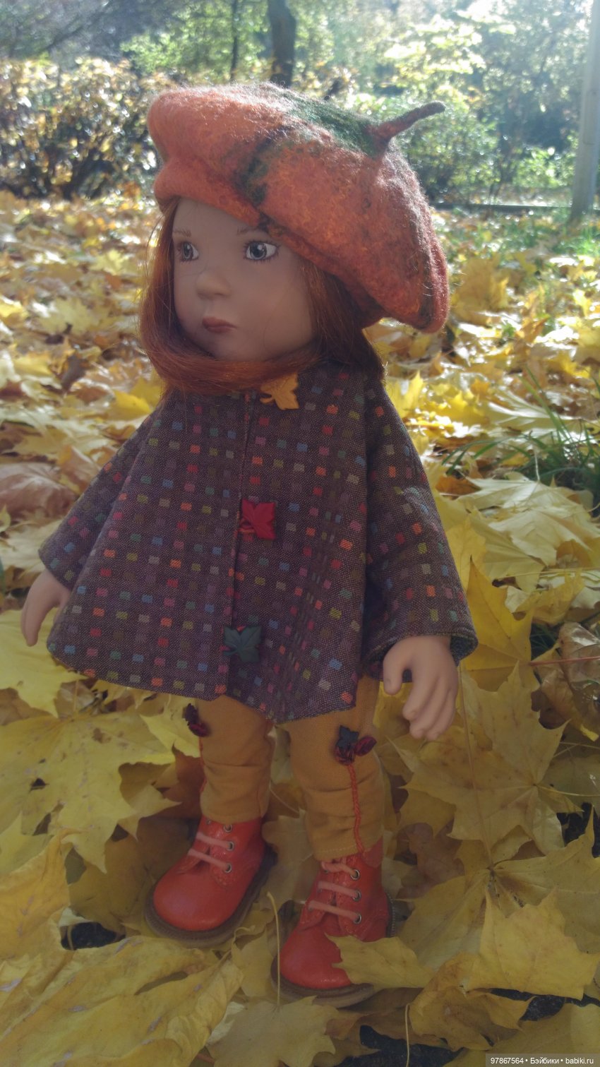 Ну как ей откажешь? Выручила выставка на Тишинке. Раздобыла я там беретик-тыкву, дома в запасах нашлась ткань нужных цветов и ботиночки! Закипела работа. Анфиска послушно стояла, пока я делала выкройки… ведь первый раз шью для нее.