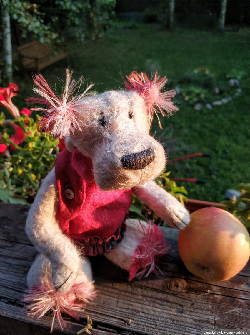 Тело полностью сделано из безопасного винила. Личико, включая глаза, целиком нарисовано. Волосы из мохера.