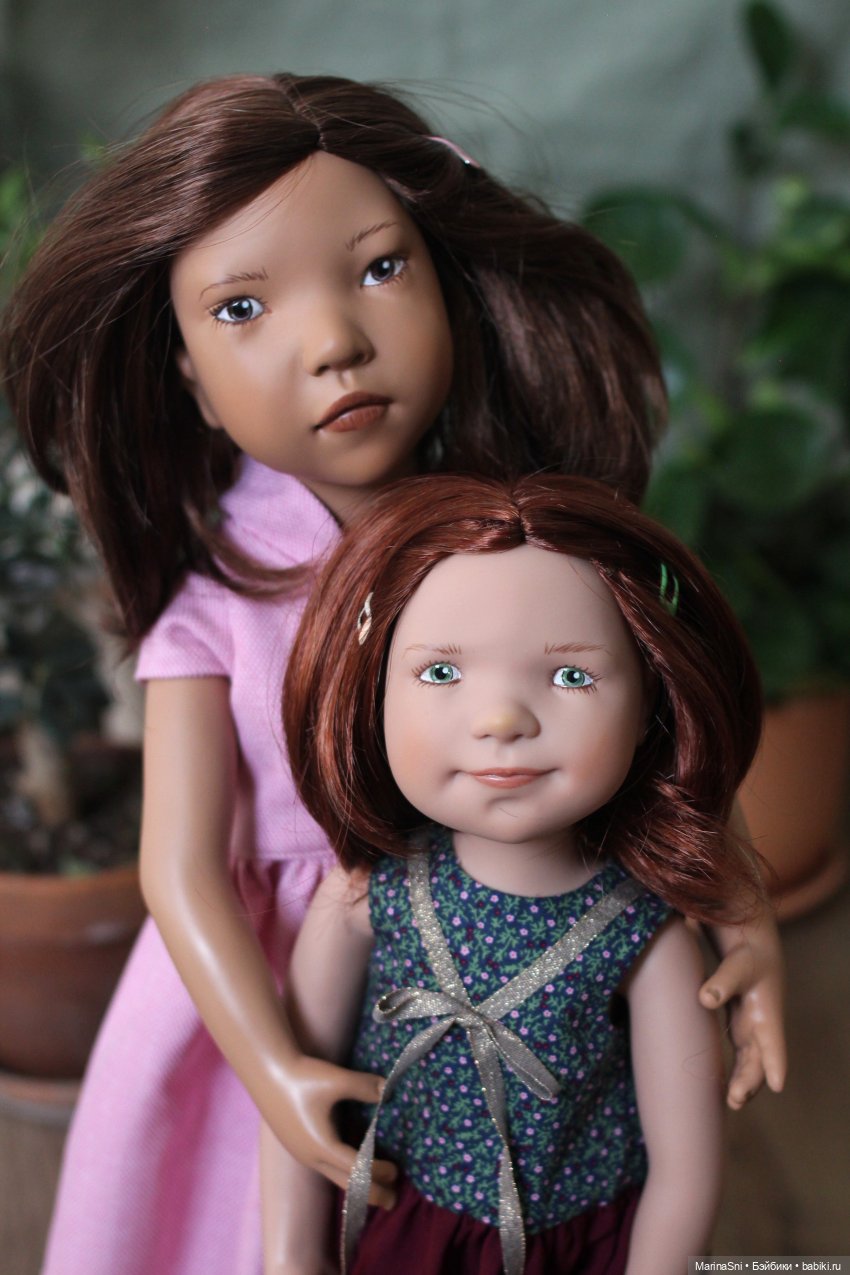 Добрый день! Недавно впервые у меня поселились умилительные малышки игровой серии Junior: Rixte Zwergnase (рост 45 см) и Capucine Zwergnase (рост 50 см). Обе полностью из винила, можно шить одежду и наряжать, но мне так нравятся их аутфиты, что пока ничего не хочется менять. У Rixte парик канекалон, у Capucine — натуральные волосы.