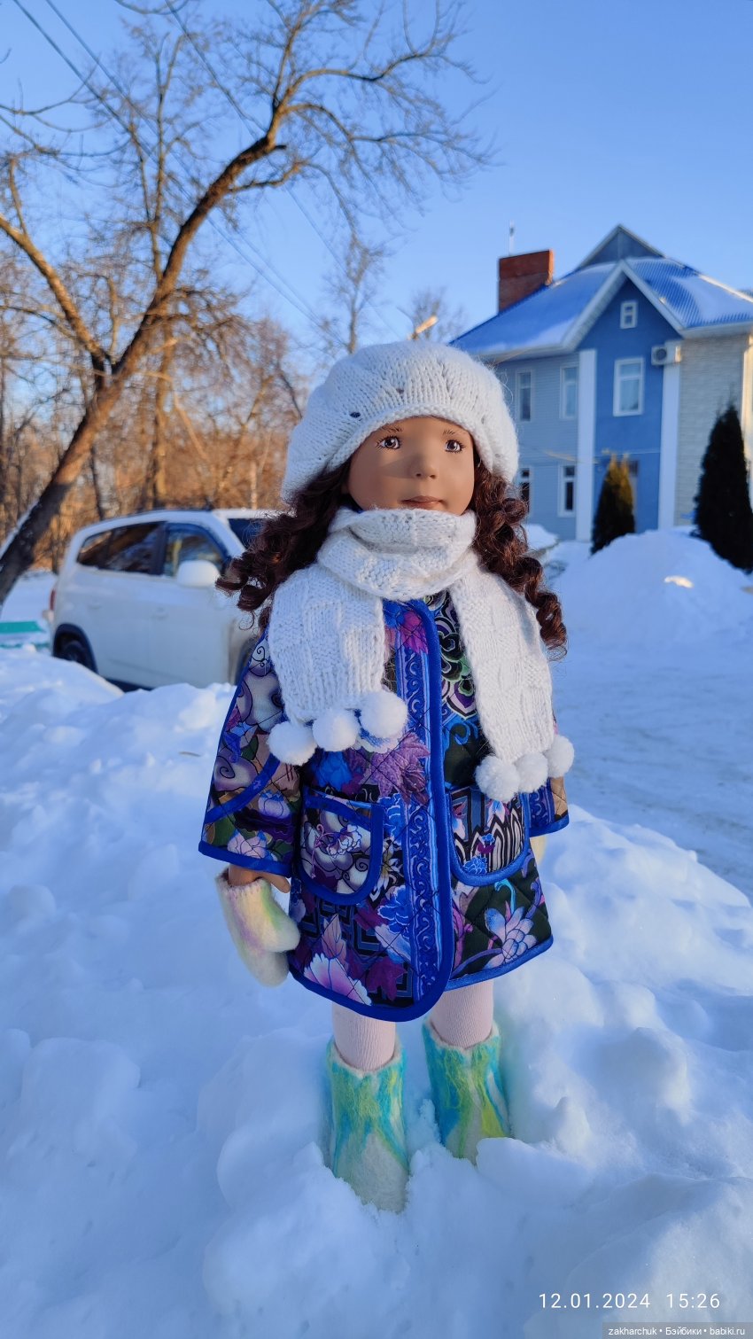 В Магадане я познакомилась с Феклой, она родилась в Рязани и уехала жить на север с маминой сестрой, которая ее тепло одела, связала ей вот такие шапку и шарфик, а мама сваляла ей валеночки