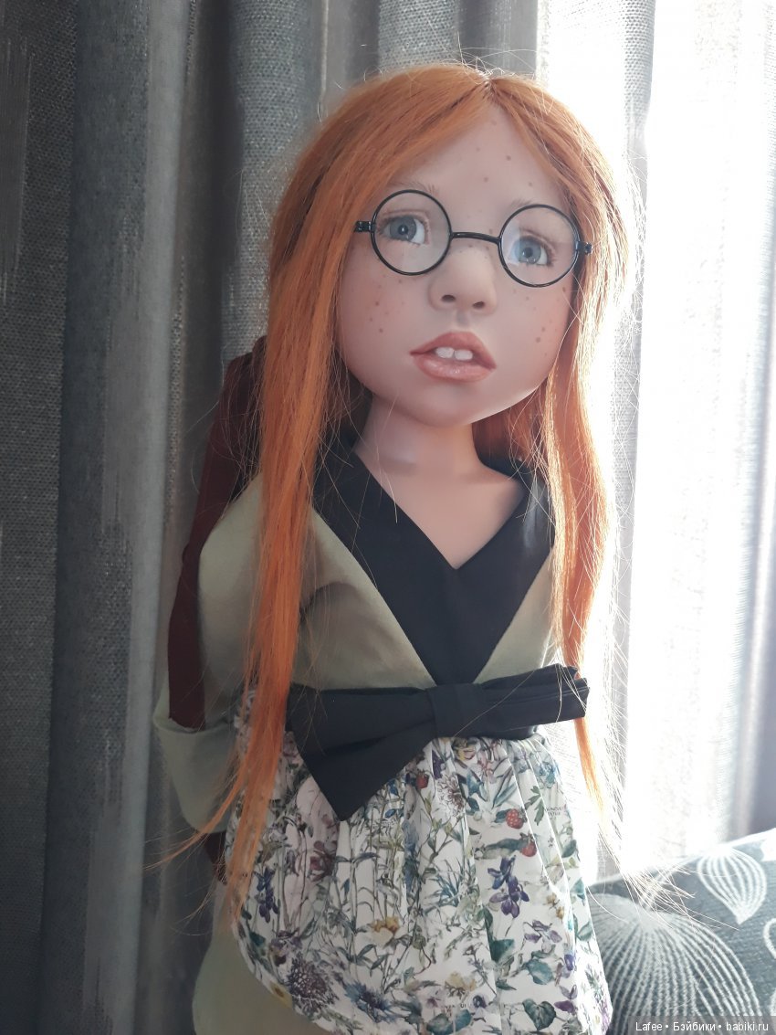 Росточком мы 75 сантиметров. Взгляд серьёзный и грустный, особенно в очках. Но что-то мне подсказывает, что за этой надуманной важностью прячется мега-позитивная, выдумщица и энергичная девчонка! Фото сделаны только по приезду, так нетерпелось показать мою красавицу всем, кто ценит и любит творчество Николь Маршоллек-Менцнер.