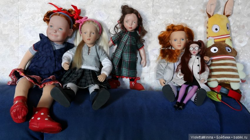 А Азалия — она видно, что девочка-позитивчик, и никогда не унывает, ни что её не сломит. У меня пока большой виниловой с расписными глазами нет. Я всё ещё думаю. Хотя давно на Валентину и Виолетту поглядываю. Есть только малышка Лизхен. Вот она среди других девчонок затесалась. Такое фото — не супер, домашнее, диванное))