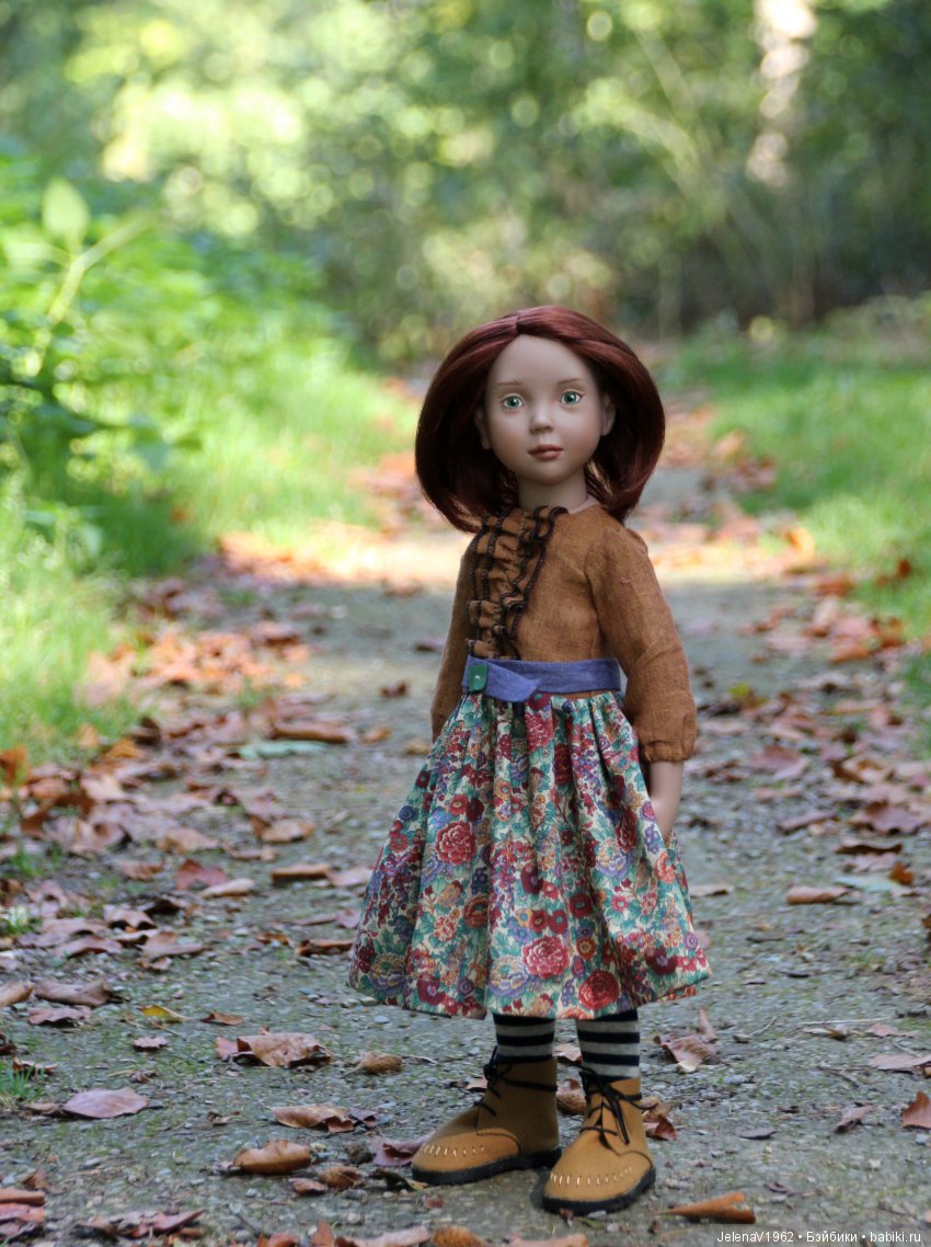 Только освободив ее и мишку из коробки, я начала ее фотографировать. А потом мы сорвались в лес, я готова была везти ее хоть на край света, нам нужен был необычный фон. Да, была не в себе, тащить коллекционку в лес, с ума сойти! Но думаю, результат того стоил. Смотрите сами!
