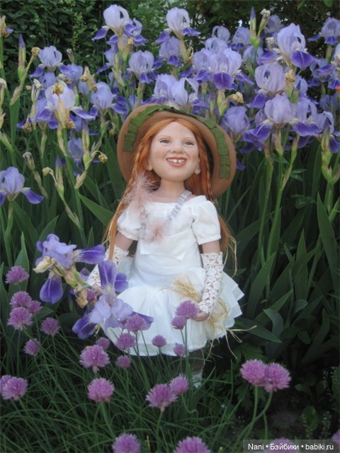 Когда было предложено отправиться в сад, чтобы позировать с ирисами, пока солнце не повернуло и не засветило фотозону, рано встать согласилась только моя Hedwig (Zwergnase, 1997). Ранняя пташка из ранней коллекции Николь Маршоллек-Менцнер. Любовь к ирисам и куклам Цвергназе, это ведь навсегда, правда?