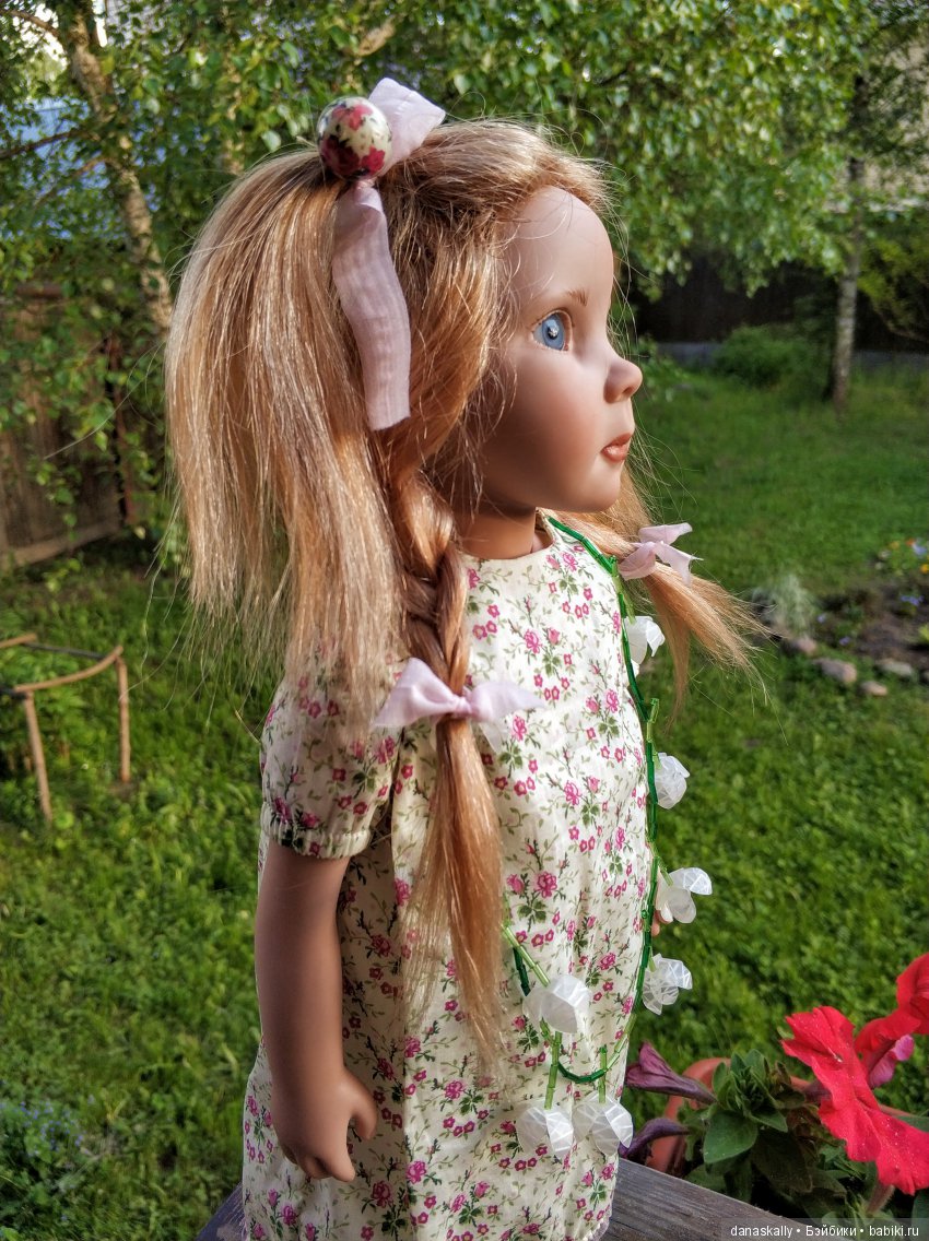 Ну что рассказывать. Не знаю, что рассказывать. Кризис у меня. Творческий. Затяжной. Два дня длился. Я за это время половину кукол чуть в шопик не отправила. Что именно они мне потом сказали, рассказывать тоже нельзя. Вдруг дети прочитают. От кризиса спасение известное- Цвергназе. К ним хорошо еще свежий воздух, цветы и небо. Пишу всю эту ерунду, а за мной внимательно наблюдают глаза. Встретились мы в Гостином дворе. На выставке в декабре у стенда Подснежников. Я в молчаливом восторге рылась на полке среди коллекционных Цвергназе. Мне навстречу пробиралось чадо. С глазами. Мы сосредоточенно посмотрели друг на друга. И оно прыгнуло мне в руки. Бедный синеглазый вихтеленок пригрелся на груди у мужа и был забыт. А мы нашли друг друга. Ольга рассказала, что в таком аутфите только две девочки. Коллекционные. По паспорту Miggi. Их сделали по заказу Подснежников. Поэтому такие бусы. И началась у меня новая странная жизнь. Все мои друзья, видя ее, сразу говорят, что она- это я…