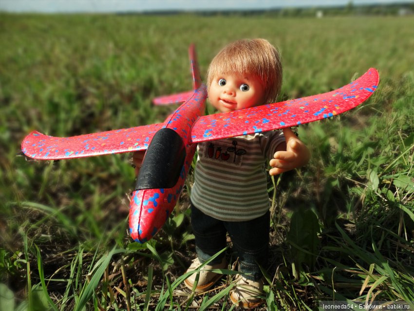 -Ириска, пошли играть, самолет запустим. Он у меня летает.