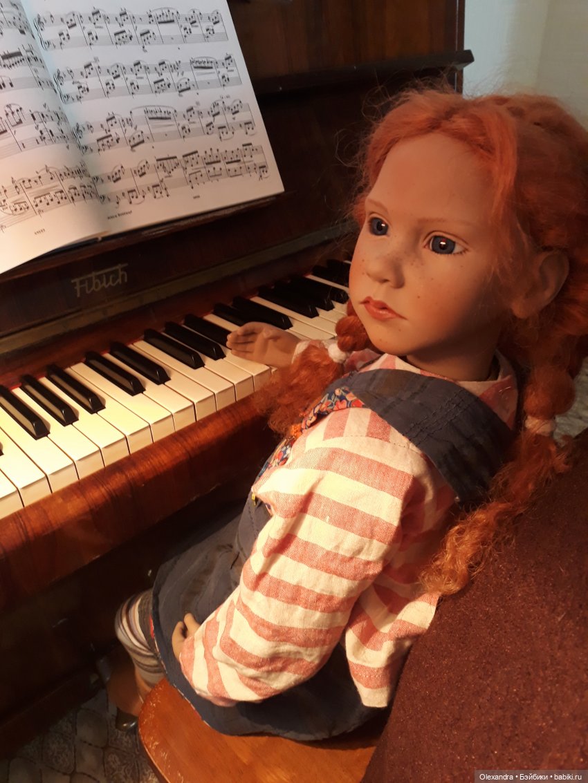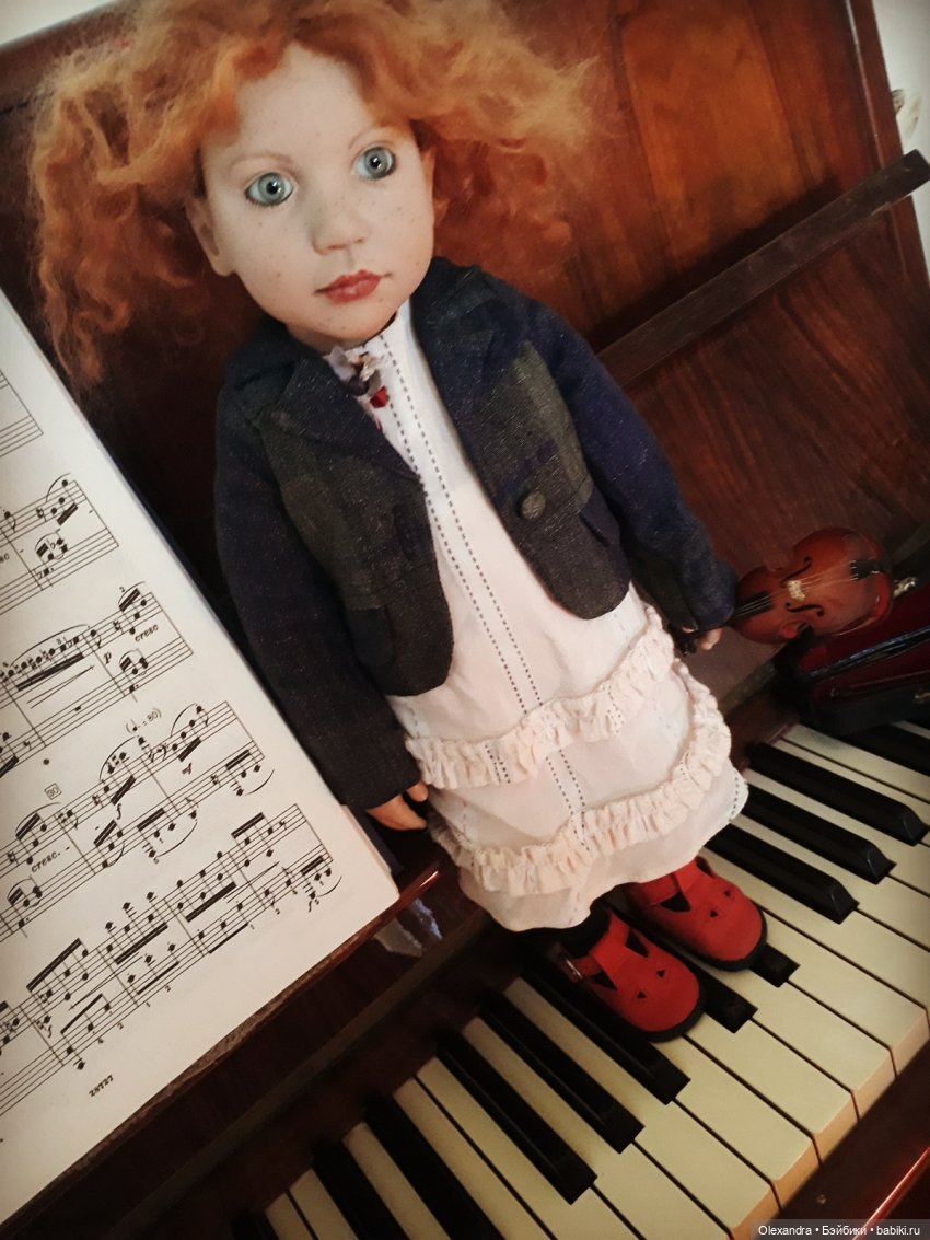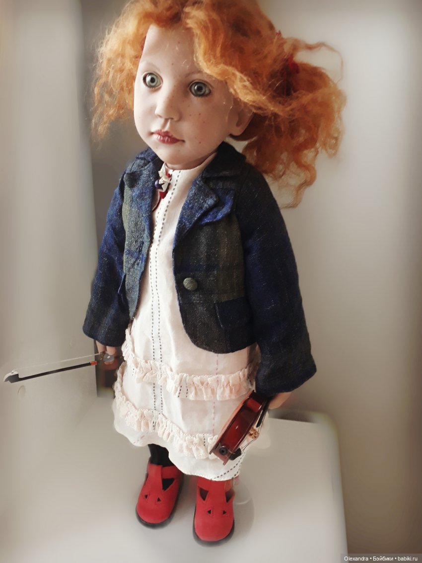 Итак, знакомьтесь- малышку зовут Аннеросли, 2004 года рождения. Ростик у нее 40 сантиметров, но она выглядит вполне себе серьезной барышней. Ну а как же еще, когда ты играешь на инструменте великого Страдивари? Николь Маршоллек( создательница или, как я ее называю, мама этих славных девочек) подарила Аннеросли скрипку!