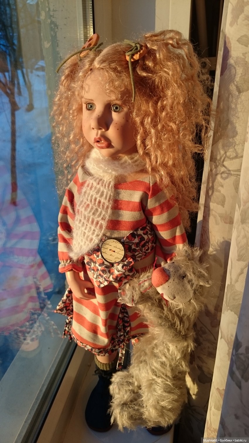 Вот такой она появилась передо мной. Номер у нее 31 из лимита в 250 шт, поэтому понятно что девочка уже давно появилась на свет. Первым делом конечно устроили помывку. Волосы я конечно побоялась мыть только пришлось немного отреставрировать кудряшки чтобы выглядели поживее. На куколку эту я давно засматривалась, но в России цена на неё очень кусалась. Увидела её в Бельгии продают — стала отслеживать, но вдруг продавец снял с продажи :-( к моему великому огорчению. Я написала продавцу вопрос продали ли куклу — в итоге сделка сорвалась и она её снова выставила причем уже дороже. Я долго кусала локти… — покупать не покупать, вывернуть ли все карманы??? Но когда упала нефть и рубль обвалился -обменные курсы понеслись! Тут уже нельзя было медлить на пэйполе еще сохранялся щадящий курс и я нажала кнопку «купить». Фуч, успела! Теперь с таким курсом коллекционировать цвергов будет гораздо труднее :-(