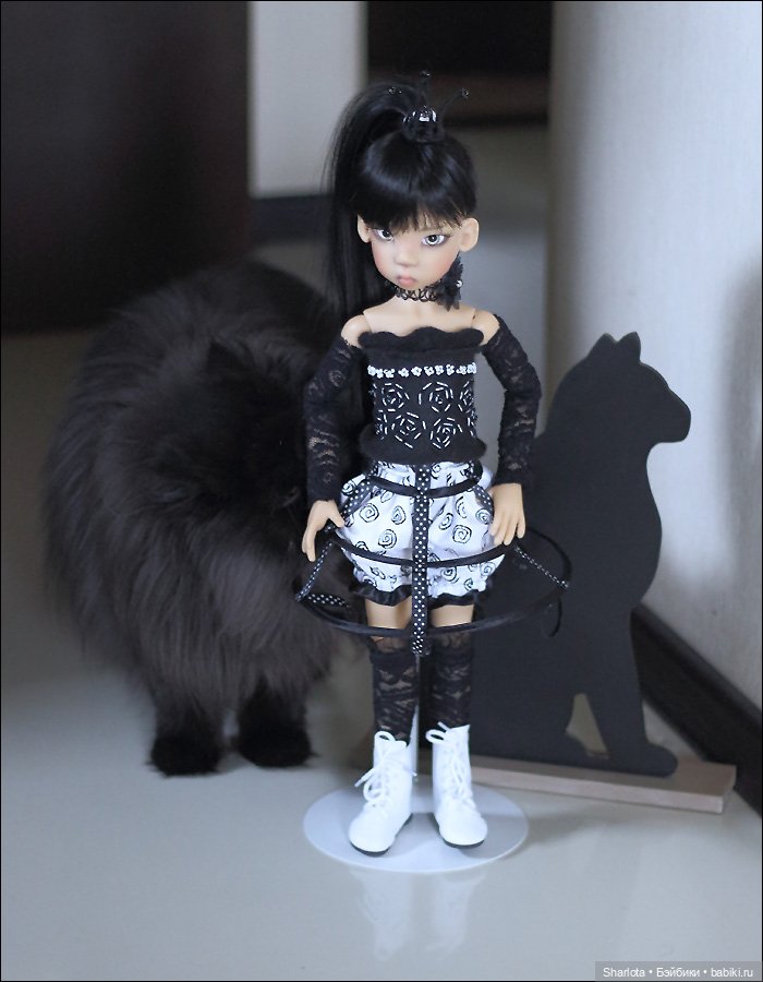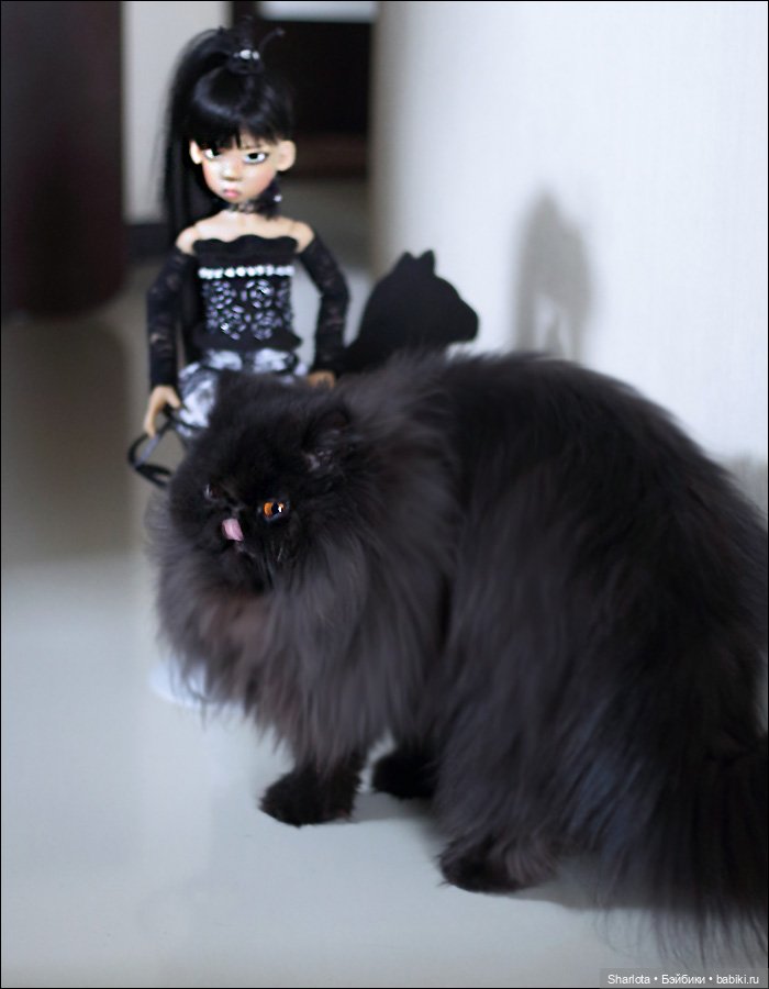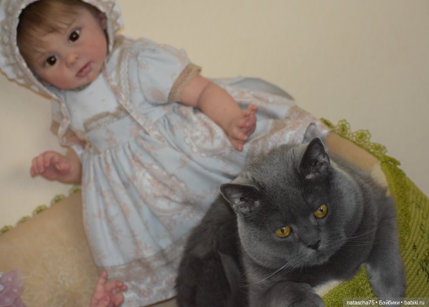 Куколку оценила и моя кошка ))), невозможно было отогнать ее, чтобы сфотографировать куклу… Решила пока куклу не ставить на полку к остальным куколкам, иначе кошка наведет свой порядок там :). Новый запах (по-моему лаванды) очень ей понравился…