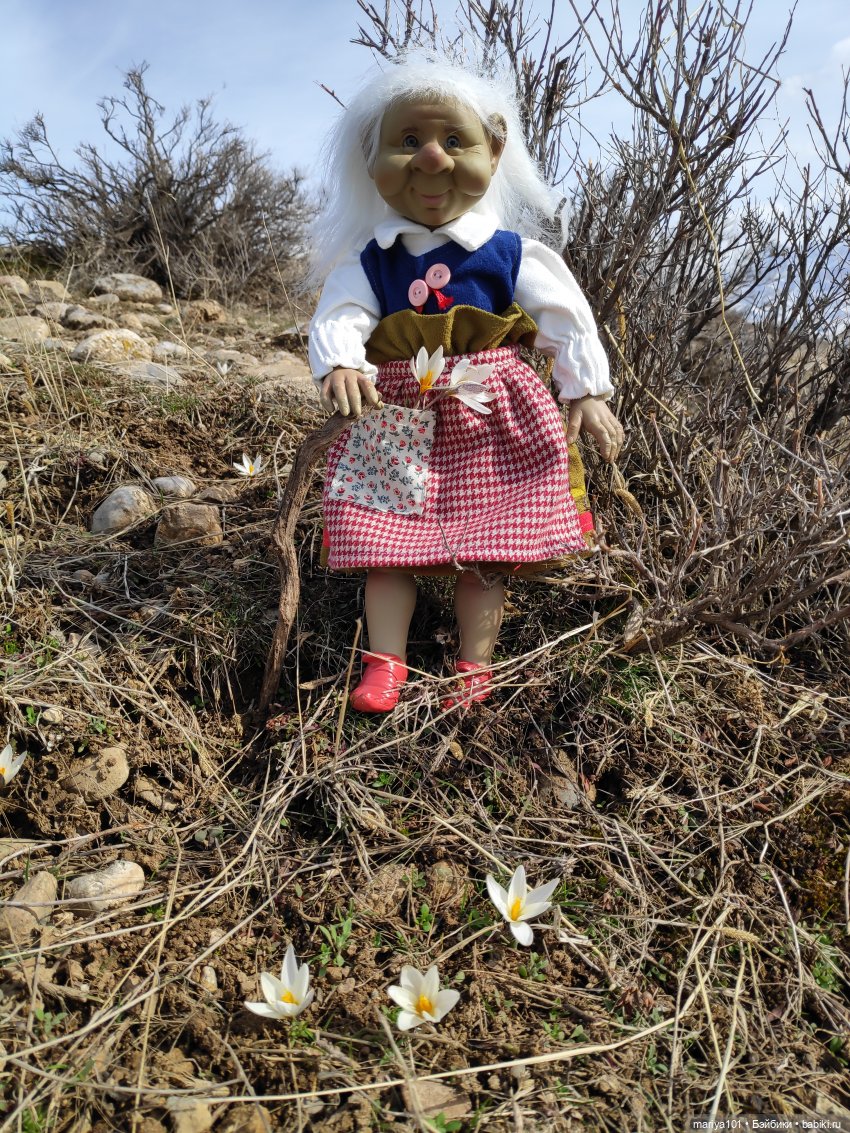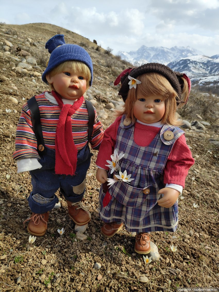 Я во все поездки, прогулки теперь беру полбагажника кукол)) Не всегда фоткаю, но если что, они есть у меня)) Наша Майя в подснежниках в гости