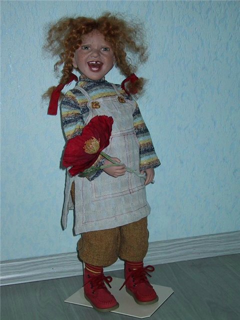 Сегодня хочу показать домашнюю фотосессию необыкновенно оптимистичной коллекционной куклы Кикки (Kicky) от Zwergnase, она вошла в коллекцию 2002 года, лимит 250 экз., рост 55 см.